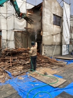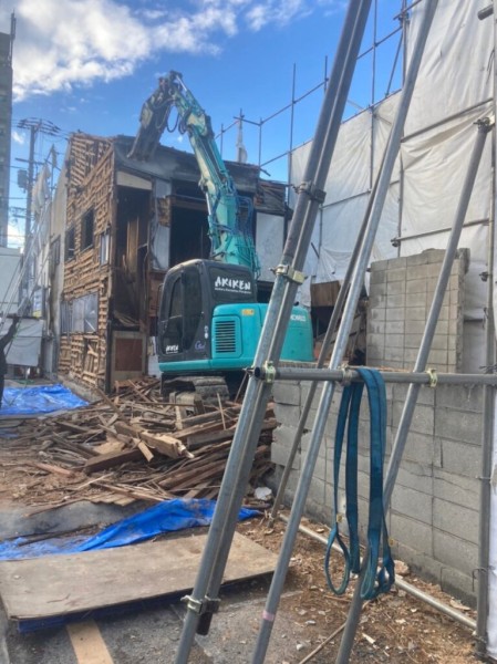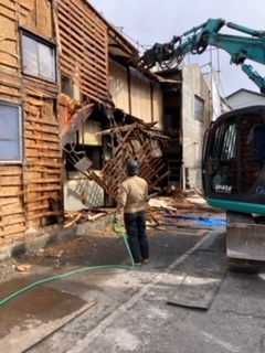 お隣の駐車場を貸して頂けたのでスムーズに解体出来ました。