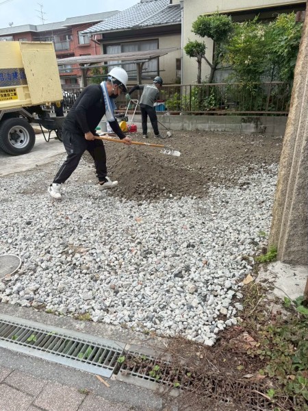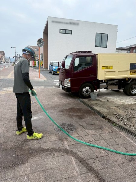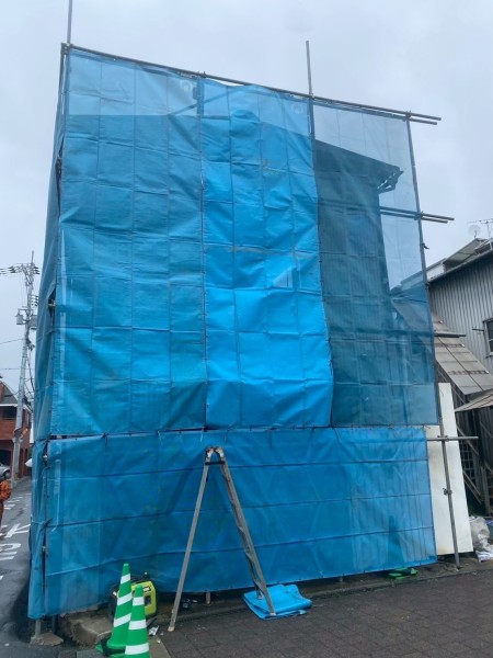 今回は作業するスペースが無いため道路占用許可をとって解体を行います。