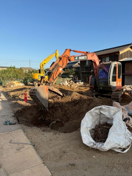 樹木の根も掘り起こして、撤去します。